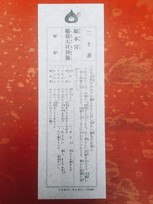 稻荷大社,作为日本伏见稻荷大社的总本社,以其千本鸟居闻名于世,吸引着来自世界各地的参拜者。人们在此祈求五谷丰登、生意兴隆,亦或求签问卜,以窥探未来的吉凶祸福。在稻荷大社众多签位中,四号签尤为引人注目,因其独特的“凶后吉”属性。此签并非单纯的吉签或凶签,而是蕴含着一种从逆境中崛起,最终走向光明的深刻哲理。理解四号签的真正含义,需要结合稻荷神的信仰、日本文化以及求签者的个人境遇,方能从中获得有益的启示。
