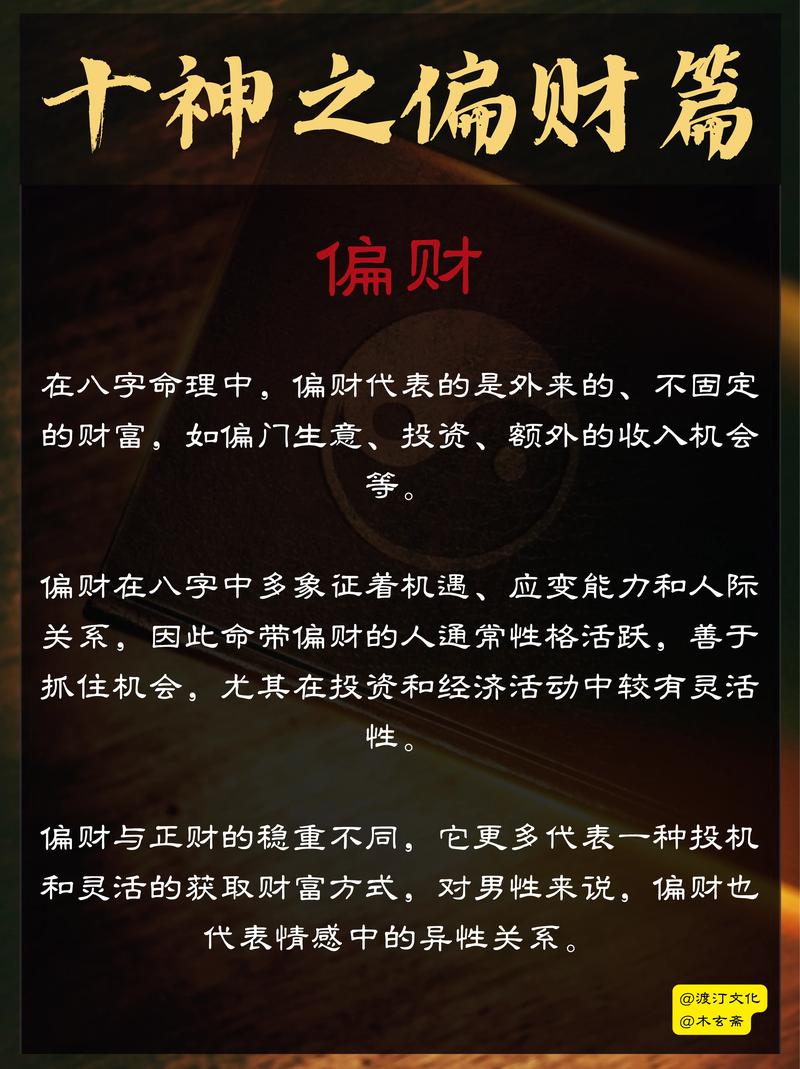 在八字命理中,偏财星代表了财富的运势,尤其是那些超出常规收入来源的财富。偏财通常来源于投资、理财、风投等非固定收入。这类财星对于个人的财富增长、商业机会具有非常重要的影响。拥有偏财星多的八字,往往意味着个体有着较强的财富运势,并且能在财运方面获得意想不到的收益。