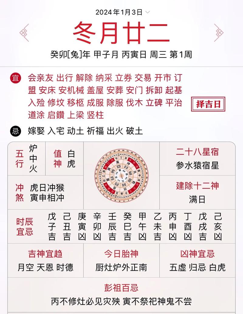 五行与命理:虎日与五行中的木元素相关,适合进行与木有关的活动,如种植、开业等。虎日也是黄道吉日,适合进行各种喜庆和重要的活动。