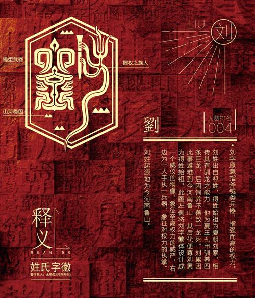 “刘”姓,作为中国历史上最常见,也最具影响力的姓氏之一,其蕴含的吉凶含义一直以来都是姓名学研究的重要课题。简单地断言刘姓为凶或吉,显然是不科学的。姓氏本身并不具备决定性的吉凶属性,其影响往往需要结合生辰八字、名字整体组合,以及其他更深层次的文化和社会因素进行综合考量。本文将从多个维度出发,深入剖析刘姓在姓名学上的潜在影响,并探讨如何在实际应用中趋利避害。