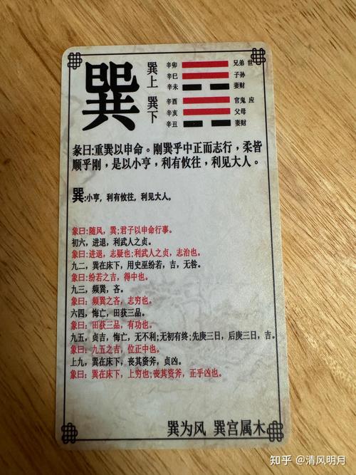 在具体的解读中,震巽组合常常暗示着事业上的进展与突破,但同时也提醒我们要警惕潜在的风险。这种卦象适合于那些勇于探索、愿意迎接挑战的人,但也要求他们在前行的过程中,能够保持冷静与清晰的头脑。