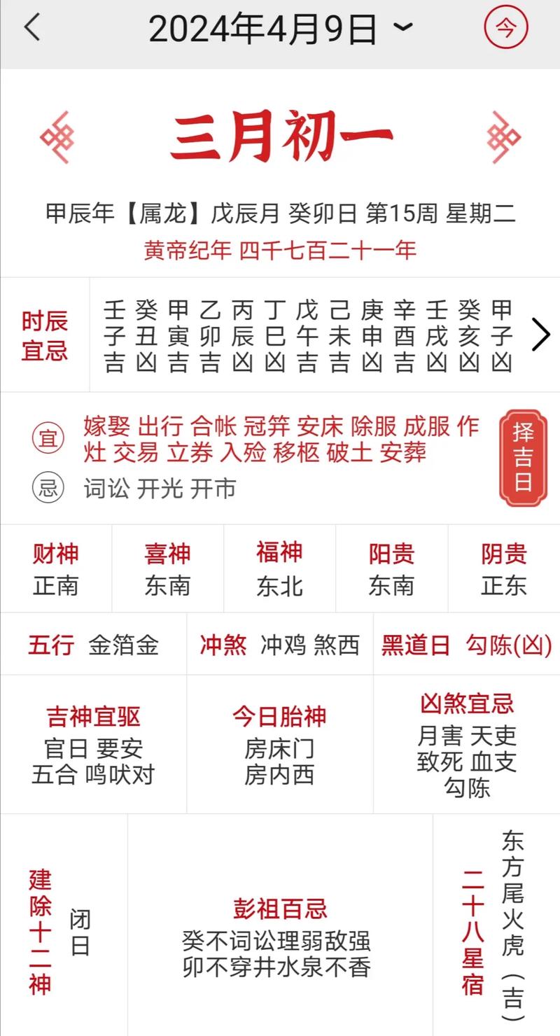 有时需要结合个人的生辰八字进行分析,日历中的吉凶信息可能对不同的个体有不同的影响。