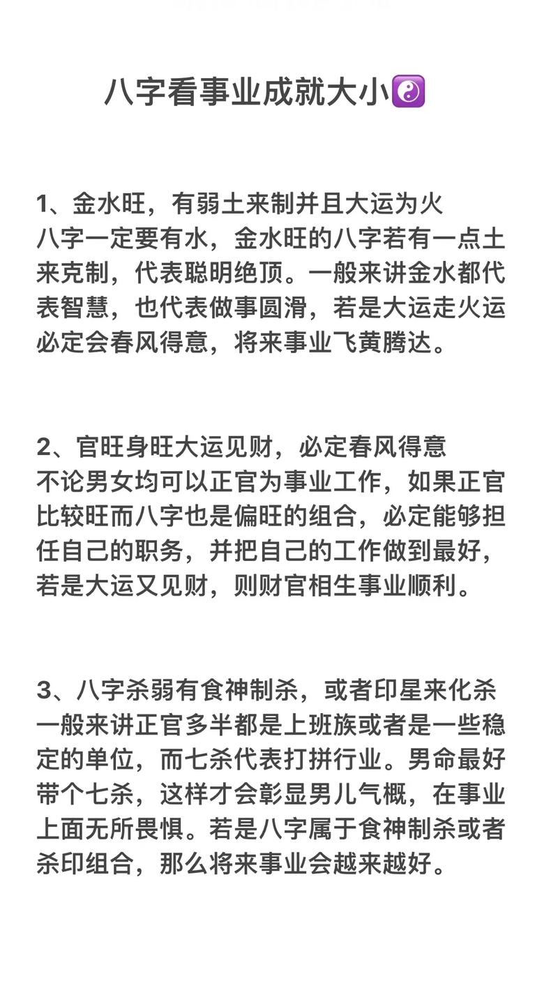 八字命盘中的五行(金、木、水、火、土)各有其属性,而每个人都有自己的喜用神和忌神。了解自己的五行喜忌,可以帮助你选择适合自己的行业和工作环境,从而更好地发挥自己的优势,提升事业运势。