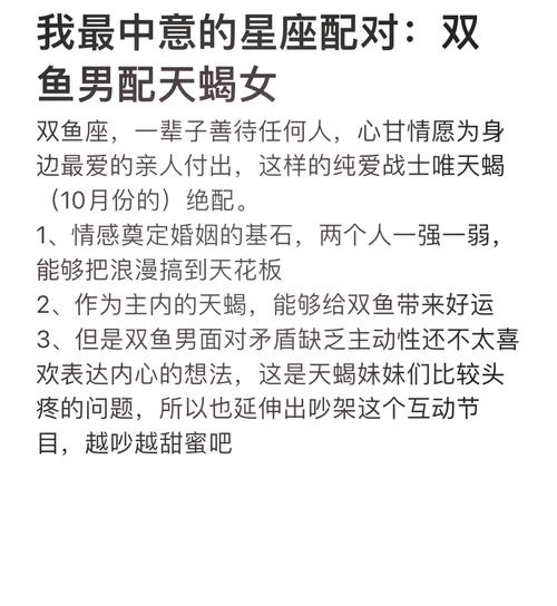 共同成长:婚姻双方应共同面对挑战和问题,通过共同努力实现个人和家庭的成长,双鱼座和天蝎座可以通过共同的目标和兴趣来加强联系和合作。