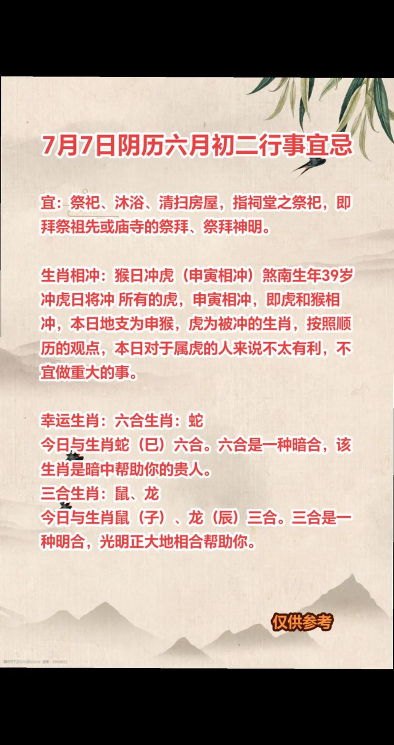 六月初二的生肖运势会因个体差异而有所不同。以上分析仅供参考,最重要的是保持积极乐观的心态,理性应对生活中的各种挑战,趋吉避凶,才能拥有更加美好的人生。无论运势如何,都要牢记“天道酬勤”,付出努力,才能收获成功的果实。