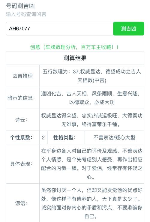 不可否认,心理因素在车牌号测吉凶中也有一定作用。一些车主认为"吉利"的车牌号能给自己带来好运,从而产生一种积极的心理暗示。反之,"凶险"的车牌号可能会带来负面心理影响。