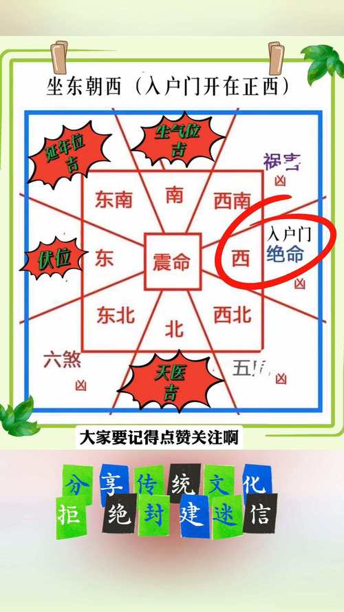 八宅明镜法:将房屋划分为八个方位,根据房屋的坐向,可以确定各个方位的吉凶属性。例如,坐北朝南的房屋,其生气位可能在东方或东南方,而绝命位可能在西方。