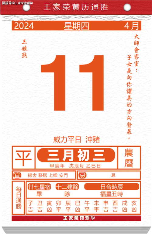 在中国传统命理学中,4月11日被认为是一个充满变数的日子。根据八字理论,这一天的天干地支组合与个人的生辰八字密切相关,因此具有不同的吉凶预示。具体来说,4月11日通常对应的天干地支为“辛巳”,这一组合的影响在于它的双重性:既有积极的推动力,也可能隐藏着潜在的风险。