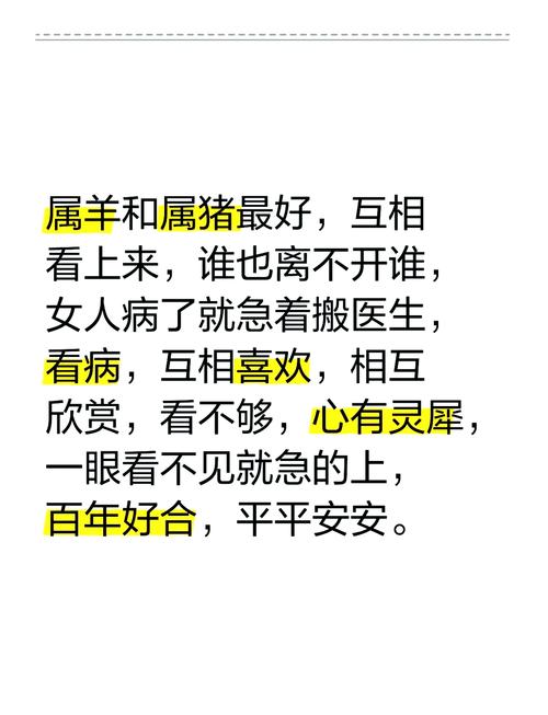 这样的婚姻关系不仅是属相之间的简单搭配,更是两个灵魂的深度交融。未来的日子里,属羊男和属猪女将携手共创一个充满爱的幸福家庭,书写属于他们的美好篇章。
