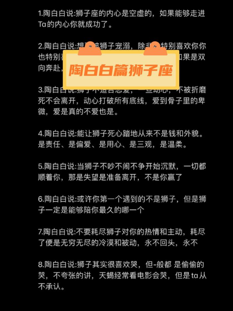 陶白白作为中国着名的星象学专家,以其深入剖析星座运势的独特视角赢得了广泛的关注。狮子座,这个由太阳主宰的星座,其每月的运势都充满了戏剧性和光彩。在陶白白的星象解读中,狮子座的月运势如同一部精彩的星际剧集,充满了戏剧性的波折和充实的机遇。本文将详细探讨陶白白对狮子座月运势的独特见解,揭示这个星座在未来一个月中的运势动态与深层影响。