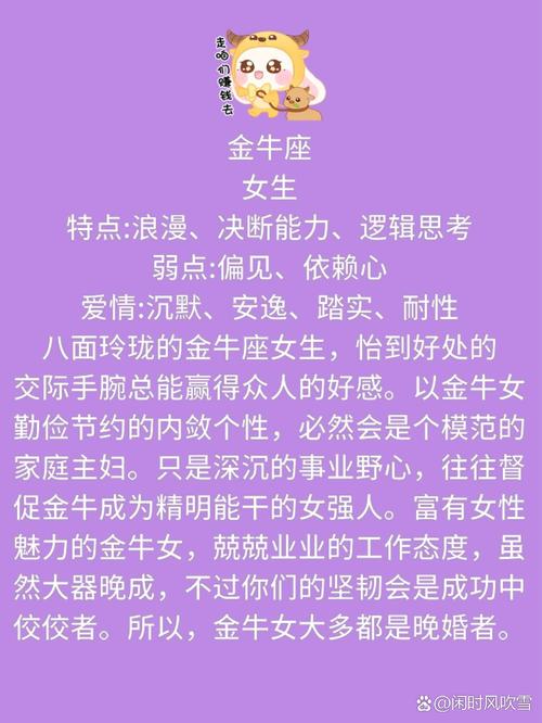 在占星学的浩瀚星空中,金牛座女生以其稳定、务实和极具魅力的个性,常常引起大家对其桃花运的关注。她们的恋爱运是否真的如星座运势预测般光芒四射?本文将深度探讨金牛座女生的桃花运,揭示她们在感情领域的真实状况。