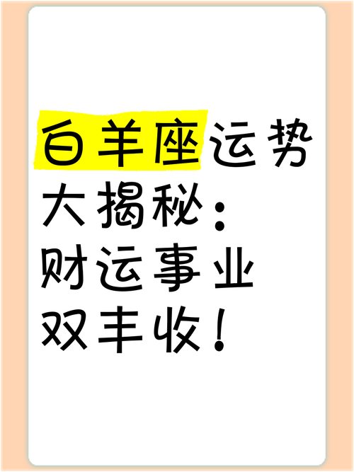 我们将为你揭开下周白羊座财运的神秘面纱,深入剖析星象对你财务状况的影响,提供精准的投资建议和理财策略,助你把握机遇,规避风险,让你的财富之路更加顺畅。请屏住呼吸,跟随我们一起探索下周的财富密码!