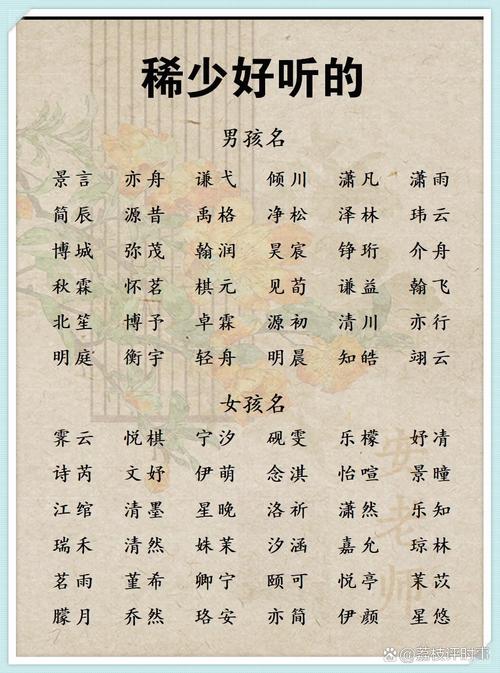 为宝宝起名时,内涵是一个不可忽视的重要因素。选择一个名字,不仅要考虑其音韵美,更要注重其寓意。例如,可以选用“云”、“月”、“星”等自然元素,寓意孩子如云朵般自由,如月亮般温柔,或如星星般闪耀。这些名字听起来简单,却蕴含着丰富的哲理与美好的期望,正符合“难得糊涂”的思维方式,给予孩子成长中更多的自由与空间。