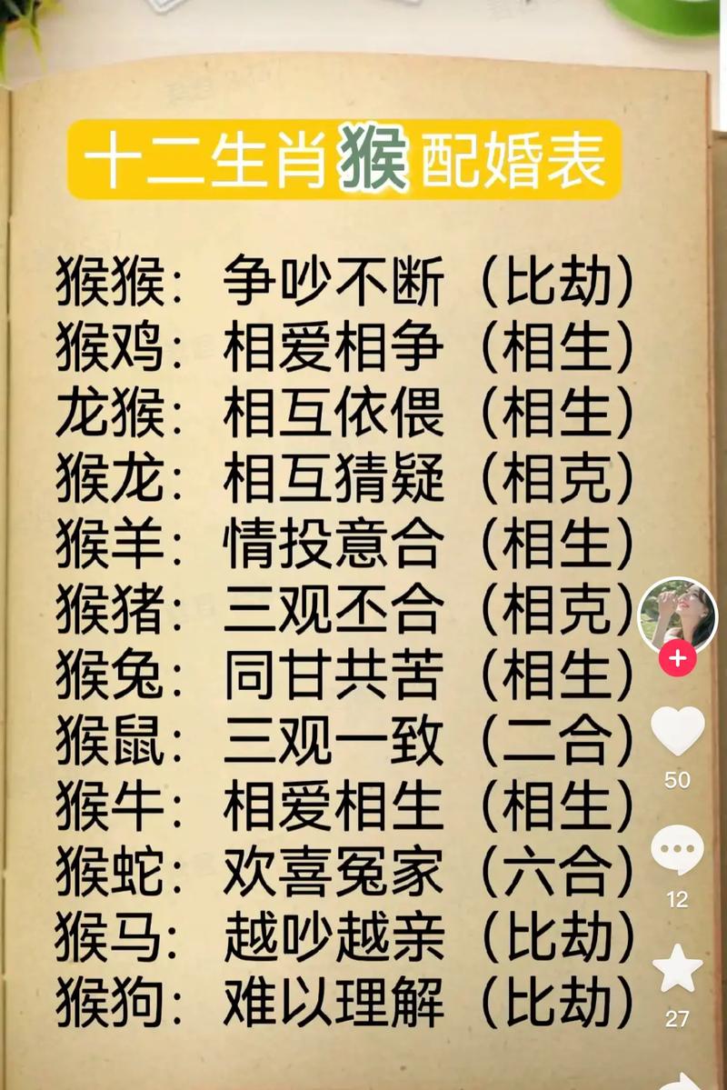 猴子男通常聪明机智,善于沟通,适应能力强。他们也浪漫热情,喜欢追求新鲜感和刺激感。在选择配偶时,需要考虑以下几个方面: