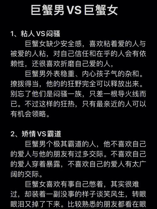 真诚沟通:主动向巨蟹男表达你的感受和需求。倾听他们的观点,并尝试理解他们的情绪。