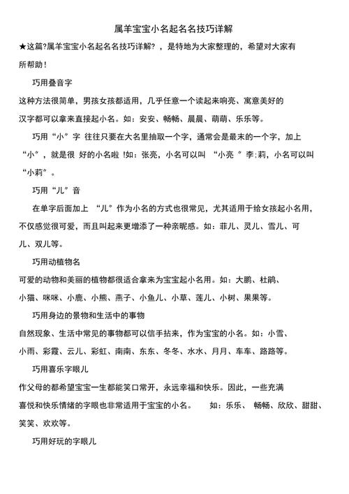 遵循以上禁忌,为属羊宝宝取一个吉利响亮的名字,不仅能助其健康成长,更能为其一生带来好运和福泽。