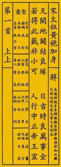 观音灵签中,第一签乃钟离成道,取自钟离权得道飞升的故事。相传,钟离权拜吕洞宾为师,潜心修炼,得道后化作一缕青烟,飞升仙界。此签预示着求签者顺利、福寿绵长。