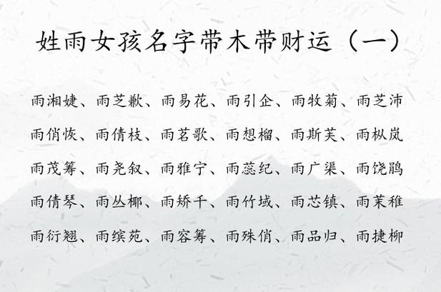 在给女宝宝起名字时,将“雨”字融入其中,可以通过以下几种方法使名字既有美感又符合文化内涵: