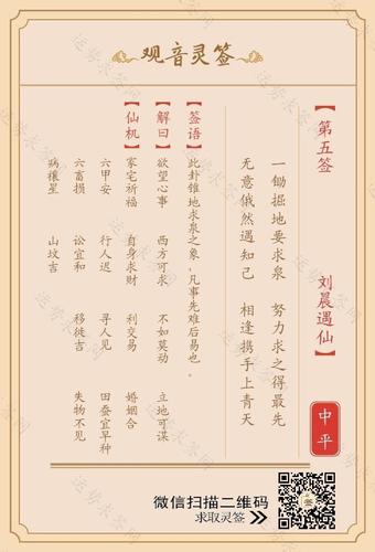 观音灵签,作为一种古老而神秘的占卜方式,自古以来便被用于指引人们解决各种问题。每一签都蕴含着深刻的寓意和智慧,尤其是在求助于观音菩萨时。本文将详细解析观音灵签第5签,揭示其在生活中的指导意义及应用方法。