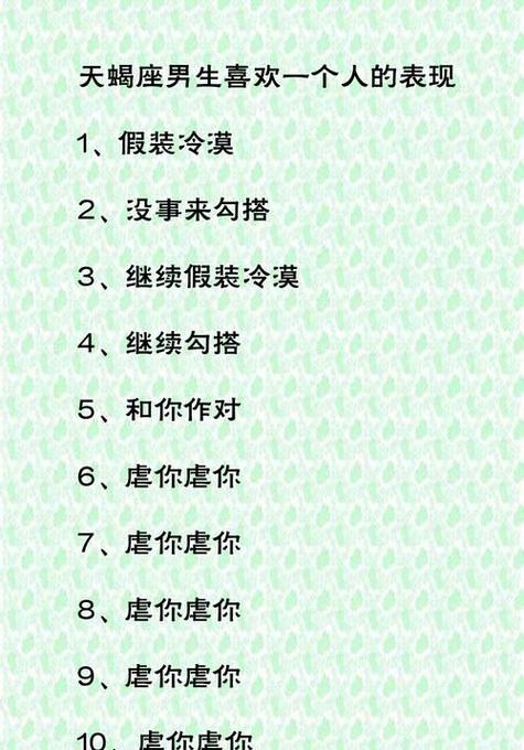 天蝎男喜欢女人撒娇,但他们并不喜欢那些矫揉造作、故作姿态的女人。他们更喜欢那些自然而然、发自内心的撒娇。因此,如果女人想要让天蝎男对你动心,就一定要掌握好撒娇的技巧。