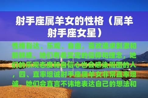 属羊的射手座女生是一种个性和魅力的星座组合,她们将属羊的温柔与射手座的冒险精神完美融合。这一独特的星座搭配不仅让她们在性格上表现出独特的特征,也在爱情中展现出丰富的层次。本文将详细探讨属羊射手座女生的性格特点和爱情观,帮助大家更好地理解她们在情感生活中的表现与需求。