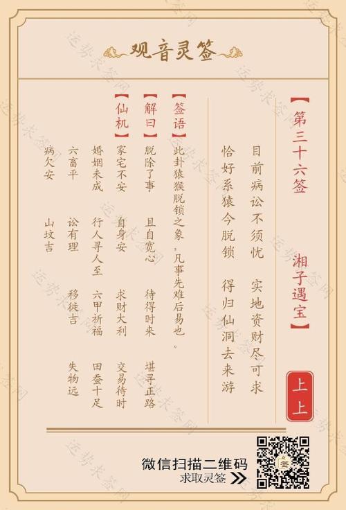 观音灵签作为一种古老的占卜方式,承载着丰富的文化内涵和宗教信仰。其背后不仅蕴含着智慧,更是人们寻求内心平静与指导的工具。今天,我们将深入探讨观音灵签的第36签,揭示其深刻的寓意和在生活中的实际应用。
