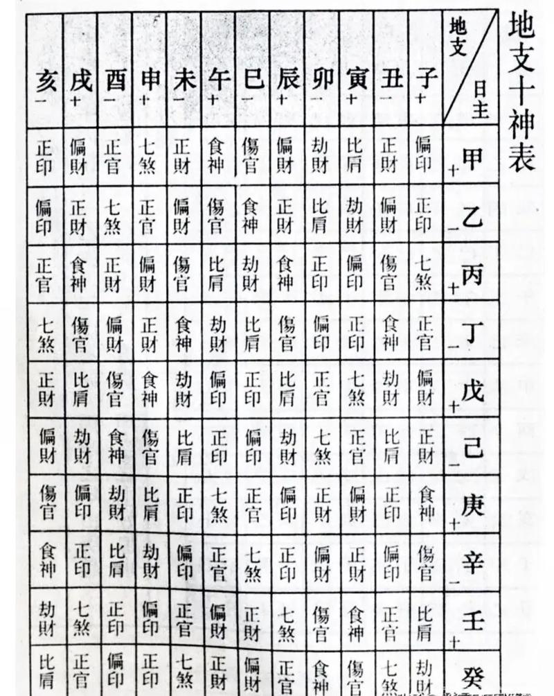 生辰八字中,十神是用来分析命格吉凶的重要组成部分。十神代表着命主不同的性格特质、生活轨迹和运势状况。根据日元和月令五行生克关系,可以确定十神在八字中的位置。