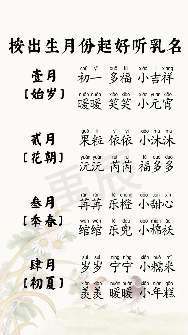 5. 考虑发音和意义:选择发音悦耳、意义吉祥、适合婴儿性别的乳名。