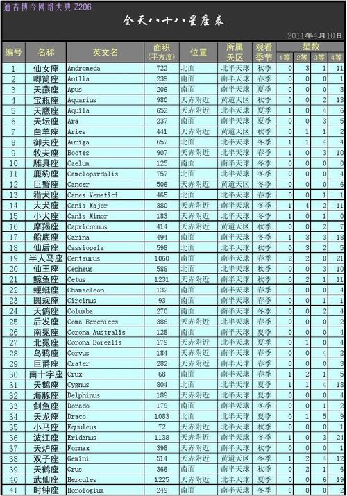 星座名、日期、星座属性、幸运数字、辛运颜色、