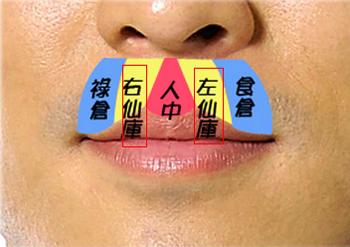 仙库在鼻孔兰台下,人中两侧,左仙库看52岁,右仙库看53岁,仙库有痣,人中有痣。