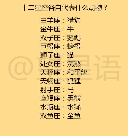 双鱼座:海马海马座是海洋中最神秘、最美丽的生物之一,也是双鱼座最喜欢的动物之一。海马座的华丽和神秘代表了双鱼座追求美丽和幻想的本质。双鱼座也欣赏海马座的温柔、善良和宽容。这种独特的特点使双鱼座对追求梦想和幸福更有信心。