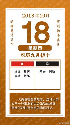 农历九月初十的吉凶之一:顺利开工农历九月初十,日辰官爵九星排列,既有利于农业生产的吉凶,也有利于开工的吉凶。例如,古人也会选择在这一天开始施工,因为这一天的安排对稳定的收入有很大的影响。特别是在山东的渔村,由于农历九月初十天气温和,也是一个很好的开工日期。