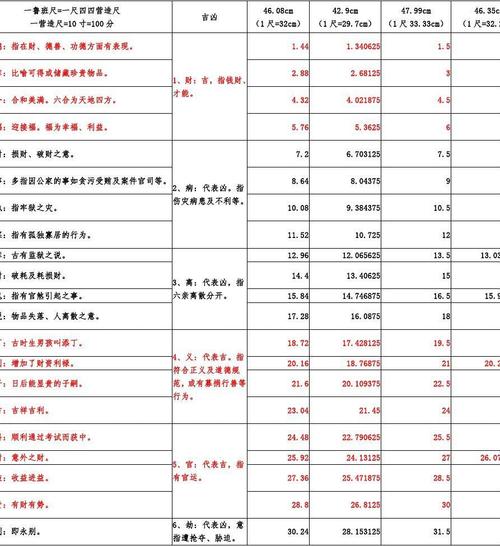 鲁班尺的吉凶表按照中国传统的算命法,鲁班尺有五行吉凶表,可以预测个人和家庭的吉凶运势,以及家里的建筑面积是否合理。根据《黄帝内经》 · 根据《阴阳五行运程》的记载,鲁班尺有五行吉凶表,即木、火、土、金、水。每种材料都应精确组装,以反映最佳效果。比如木尺可以帮助家庭财富更旺盛,土尺可以帮助财富持久,火尺可以提高家庭武功,金尺有助于把握财富,水尺可以促进两性关系的深度。