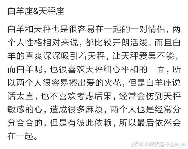 最后,建议白羊座男和天秤女在婚姻中保持相对独立的状态,同时也要关注家庭和孩子的生活。这需要两人之间的默契和协作,同时也需要他们的爱情和婚姻经受得住各种考验和挑战。