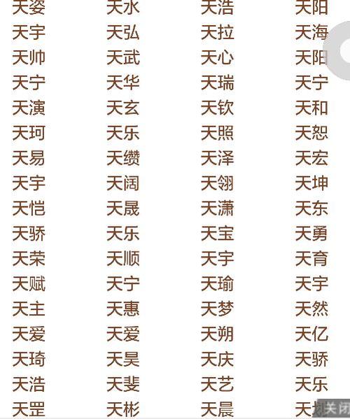 由于“天”具有多种含义和象征意义,因此被广泛应用于人名、企业名、品牌名等多种名称中。