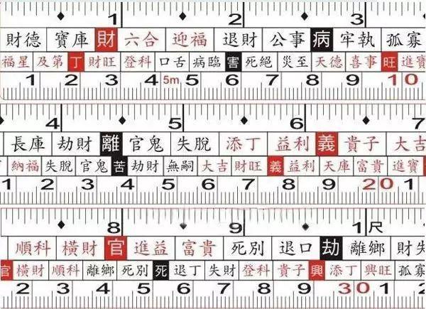 鲁班尺风水吉数对照表