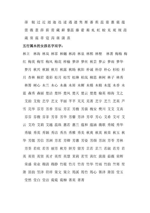 语(木)、嫣(土)、娅(土)、楠(木)、忆(土)、梅(木)、幽(土)、兰(木)、傲(土)、蕾(木)、音(土)、醉(木)、以(土)、莲(木)、芬(木)、燕(土)、幽(土)、芳(木)、依(土)、茹(木)、依(土)、卉(木)、蕾(木)、音(土)、安(土)、荷(木)、幽(土)、花(木)、又(土)、菡(木)、娅(土)、雅(木)、忆(土)、娟(木)、忆(土)、柏(木)、艳(土)、蓉(木)、艳(土)、雁(木)、巧(木)、婉(土)、若(木)、嫣(土)、蕾(木)、婉(土)、月(木)、韵(土)、月(木)、以(土)、柳(木)、婉(土)、君(木)、婉(土)、雅(木)、芊(木)、婉(土)