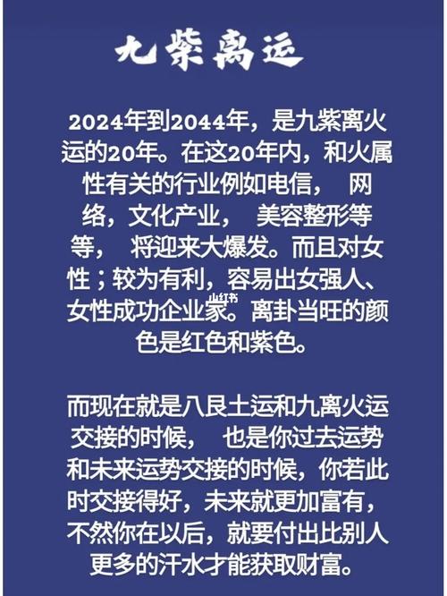 结合对三元九运理论的分析,可以看出,2023年是极其特殊的一年,2023年是根八运的最后一年,2024年将进入九紫离火运。此时,八白左辅星和九紫右毕星将相遇,转折点和变化的信息将非常明显。未来20年,九紫强大的行业、事务和信息将开始启动,因此许多职业可以提前布局和准备。