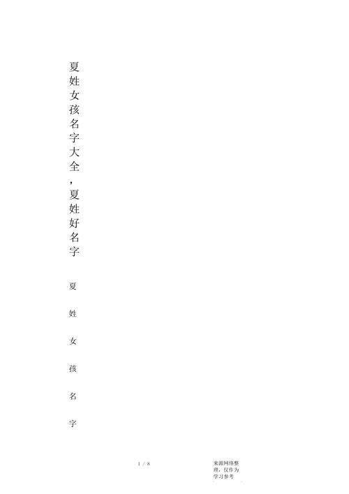 夏姓,姓氏之一,主要由思姓夏姓和桂姓夏姓组成。它是一个多源流的多民族姓氏。在宋朝的百姓中,夏姓排名第154位。夏姓给人一种小清新优雅的感觉。那么,夏姓女孩应该如何取一个古老优雅的名字呢?以下是夏姓独特的女孩名字,供您参考和选择!