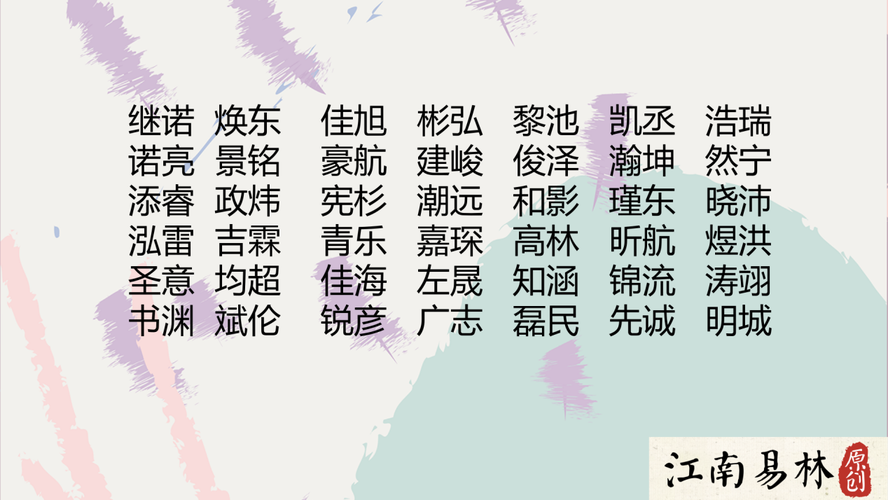 给男孩取名时要注意意思和语气的变化。响亮大气的名字更适合男孩。人们在生活和工作中都需要名字。这样的名字能给人留下好印象,也能给男生增添高贵气质,给人内涵感。事实上,通过大自然中壮丽的景观给男孩取名也很好。用雷、风、海、石等字命名,可以突出男孩的高贵。