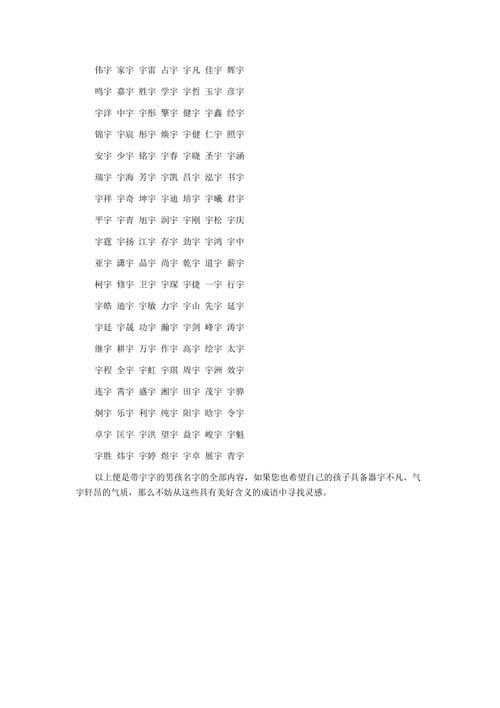 宇孜宇直宇它宇磨宇承宇威宇勋宇耀宇归宇器宇心宇凤宇征宇阔宇权宇言