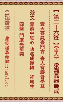 吕祖灵签第23签的意思可以概括为:外出工作抽签,前途光明,安顺有报。旅行时不仅可以安全,还可以获得可观的报酬,从而建立一个幸福的家庭事业。