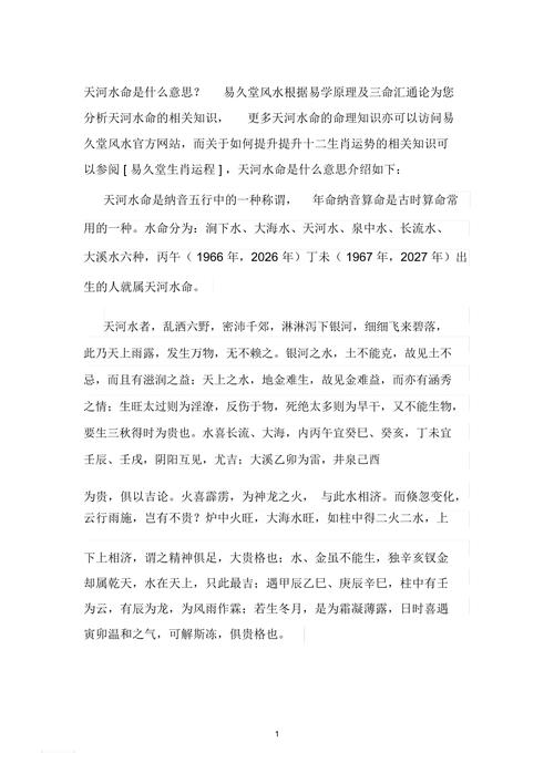 在中华五行文化中,水命被视为一种深意的命理类型。水,作为五行之一,象征着流动、智慧和柔韧。水命的人通常被认为具备灵活的思维和适应环境的能力,他们的命运轨迹却是千变万化,充满了未知的挑战与机遇。