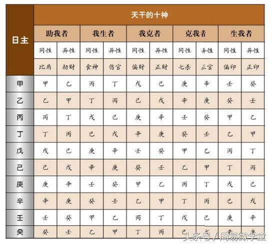命宫的五行属性对应着十神中的某一个,分别如下:
